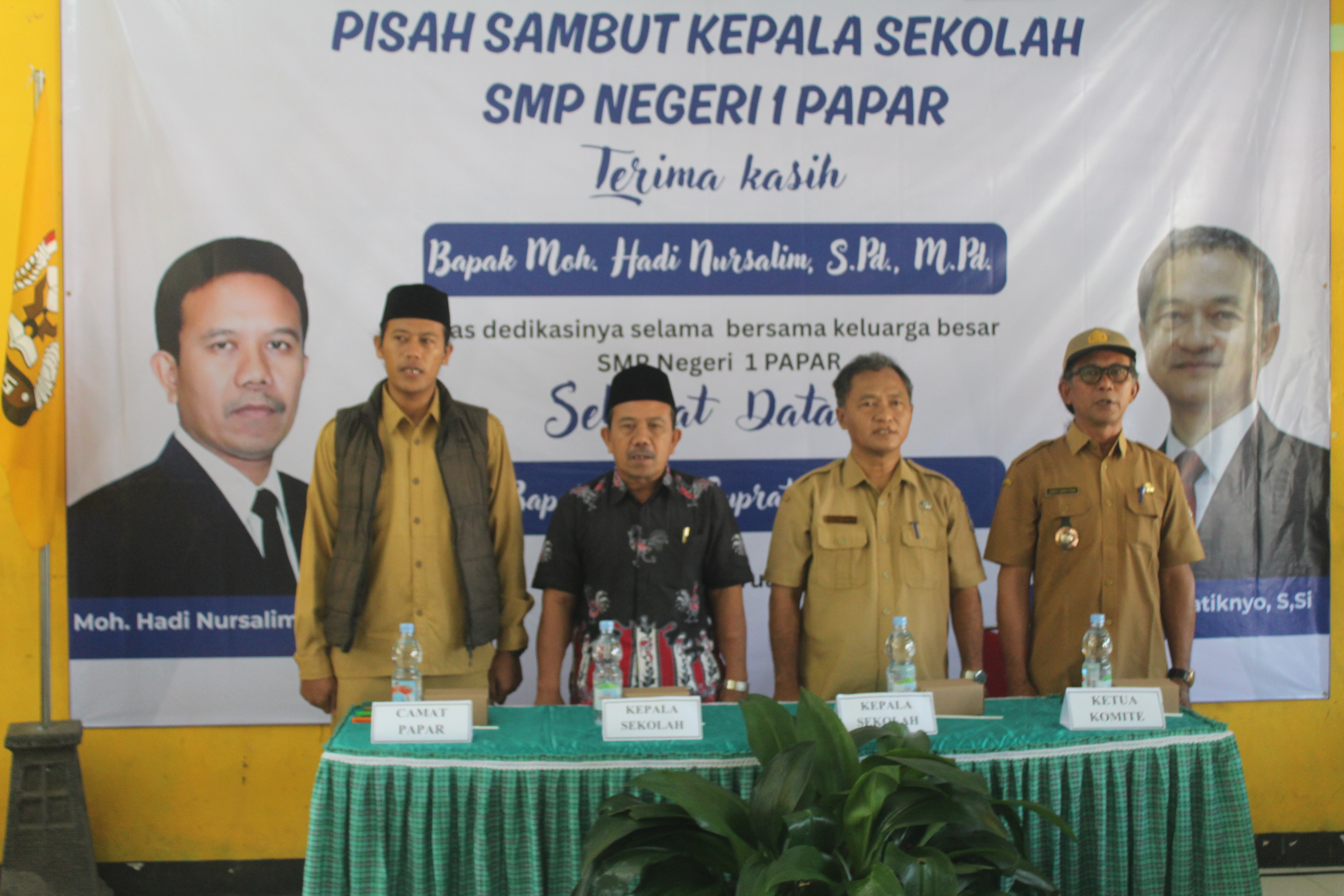 Dalam kegiatan ini, keluarga besar SMP Negeri 1 Papar menyampaikan ucapan terima kasih dan penghargaan setinggi-tingginya kepada Bapak Moh. Hadi Nursalim, S.Pd., M.Pd. atas dedikasi, pengabdian, dan kepemimpinan beliau selama menjabat sebagai Kepala SMP Negeri 1 Papar. Selama masa kepemimpinan beliau, sekolah mengalami berbagai perkembangan positif, baik dalam peningkatan mutu pembelajaran, penguatan karakter peserta didik, maupun kemajuan di bidang akademik dan nonakademik.