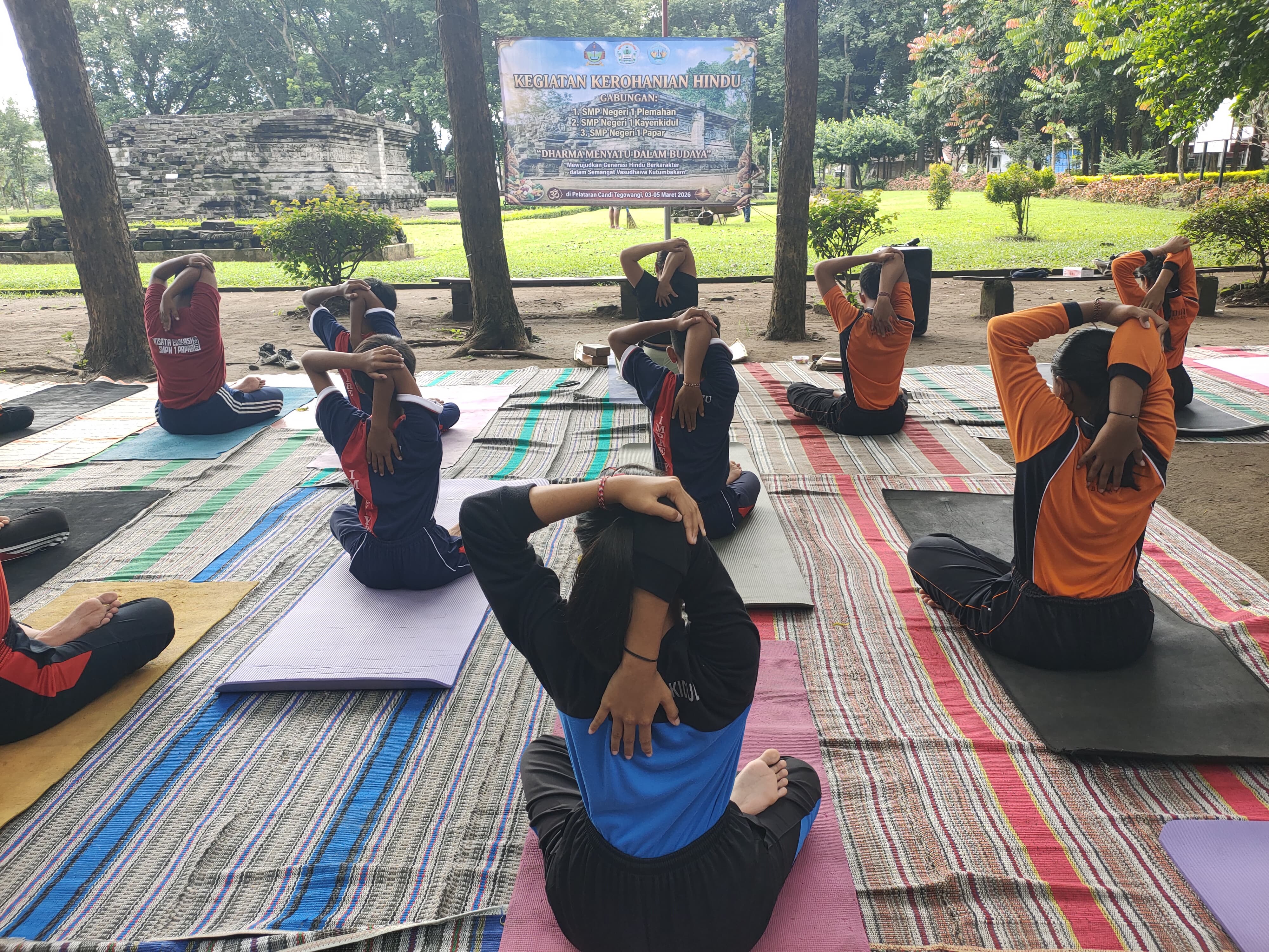 Papar, 07 Maret 2026 — Suasana religius dan penuh kebersamaan terasa di Pelataran Candi Tegowangi, Plemahan, saat murid-murid Hindu dari SMP Negeri 1 Plemahan, SMP Negeri 1 Kayenkidul, dan SMP Negeri 1 Papar mengikuti kegiatan Pasraman Gabungan Murid Hindu yang berlangsung selama tiga hari, 3–5 Maret 2026. Kegiatan ini mengusung tema “Dharma Menyatu dalam Budaya: Mewujudkan Generasi Hindu Berkarakter dalam Semangat Vasudhaiva Kutumbakam.”